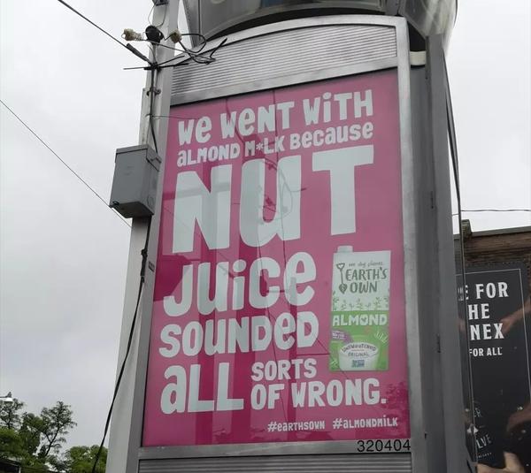 Bus ads, sandwich boards, and billboards—oh my! My proudest moment? Getting ‘Nut juice’ on a national billboard campaign.